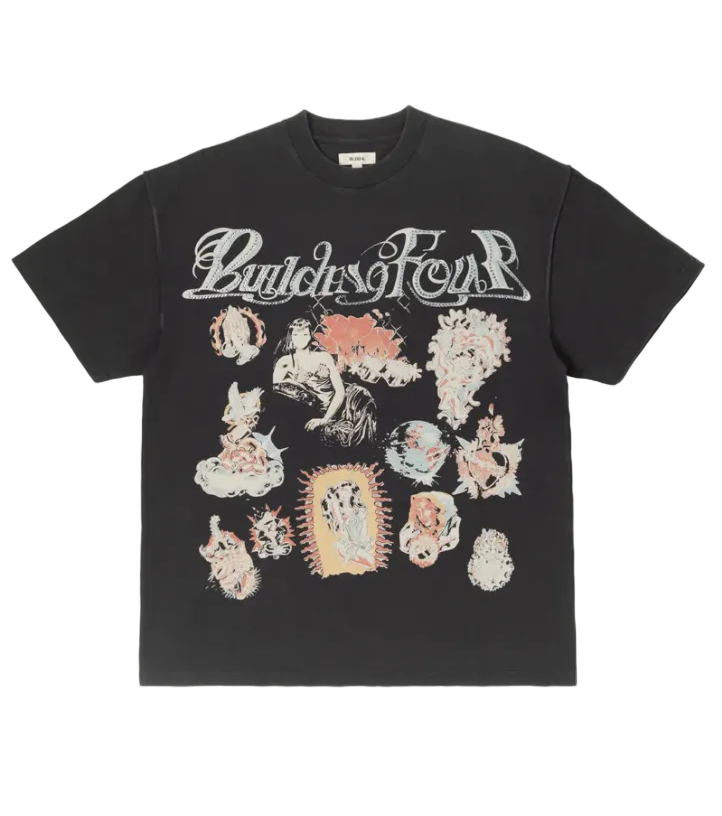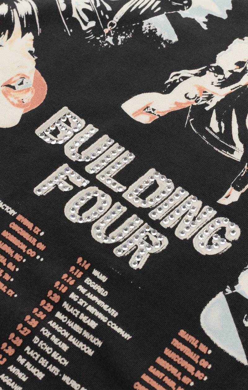 The BLDG4 Stray Short Sleeve Knit in Charcoal Art delivers a clean mix of vintage wash and elevated streetwear detailing. Designed with a faded charcoal base, this piece stands out through its bold graphic design and subtle rhinestone accents.