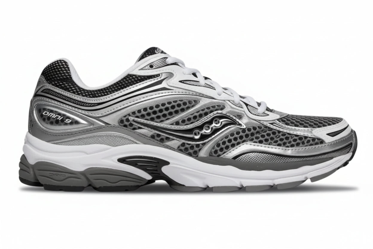 A perfect mix of retro running tech and modern streetwear appeal, the ProGrid Omni 9 “Grey / Silver” delivers early-2000s performance aesthetics with a clean, metallic edge. Built with breathable mesh and layered overlays, this pair stands out while providing all-day comfort and stability.