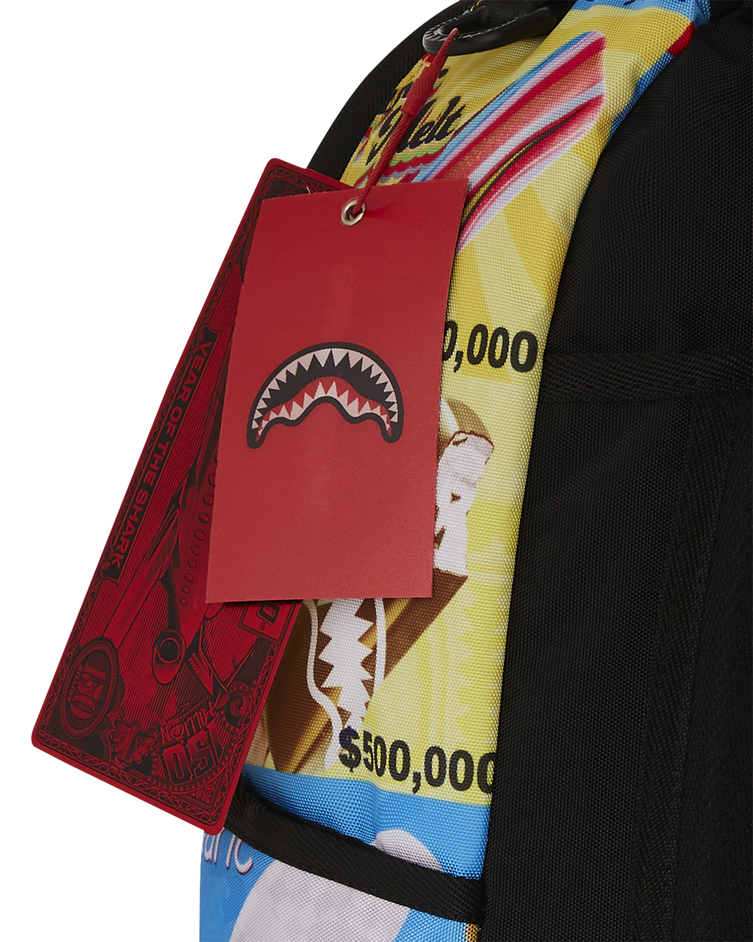 Dimensions: 18" x 6" x 11.5" • Front zipper pocket • Side pockets • Zippered Stash pocket • Separate velour sunglass compartment • Ergonomic mesh back padding • Adjustable Straps for custom sizing • Gold zippers with metal hardware • Metal "Sprayground Authentic" badge • Slide through back sleeve connects to carry-on luggage to free your hands